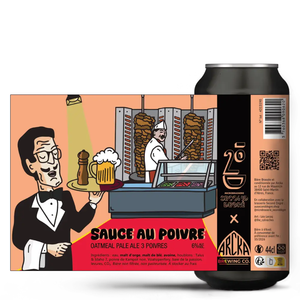 Quand on décide de faire une bière avec la brasserie Second Degré ça se passe forcément dans la retenue et la sobriété. C’est pourquoi on a décidé de vous sortir la Sauce au Poivre, une Oatmeal Pale Ale à 6 % au Poivre noire de Kampot, Poivre Voatsiperifery et Baie Passion. Une bière moins dangereuse que les kebabs 🥙 qu’elle pourrait accompagner car elle reste cependant douce et peu piquante pour se focaliser sur l’aromatique des 3 poivres.🧂 Le tout enveloppé dans une texture veloutée qui saura accompagner les “salades tomates oignons chef?” les plus enjouées🧑‍🍳.